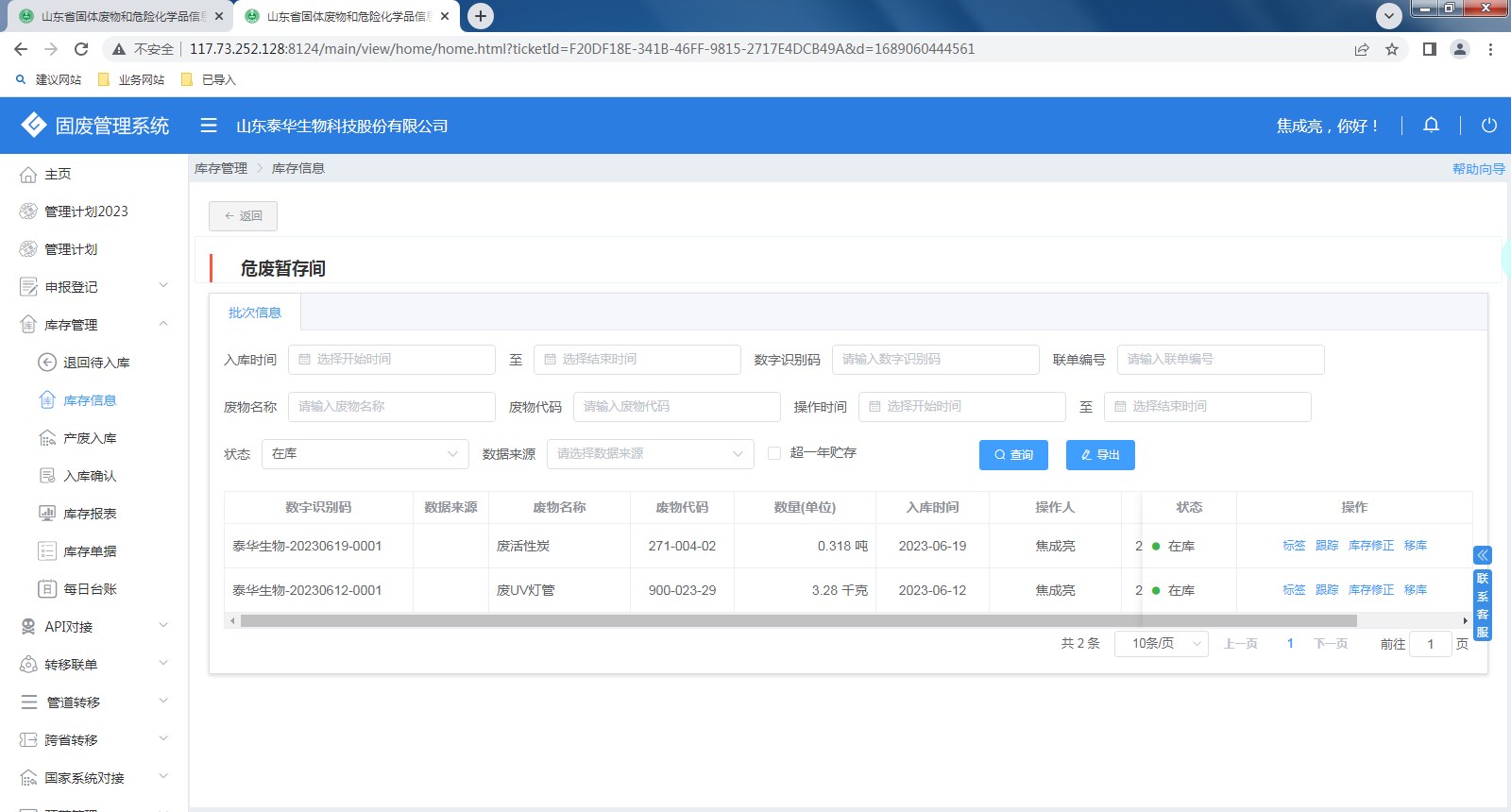 泰華生物2023年上半年產(chǎn)生危廢:1廢活性炭271-004-02 0.318噸,2廢UV燈管900-023-29 3.28kg